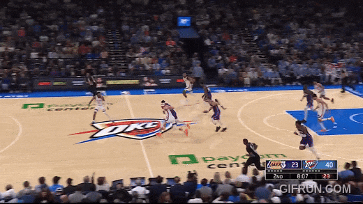 卢卡面对切特射中了换防三分,但雷霆依然锲而不舍,用切特的换防对付卢卡,切割湖人的出球。