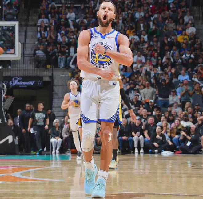 此役,库里出战34分钟,砍下赛季新高的46分,外加5板5助2断。